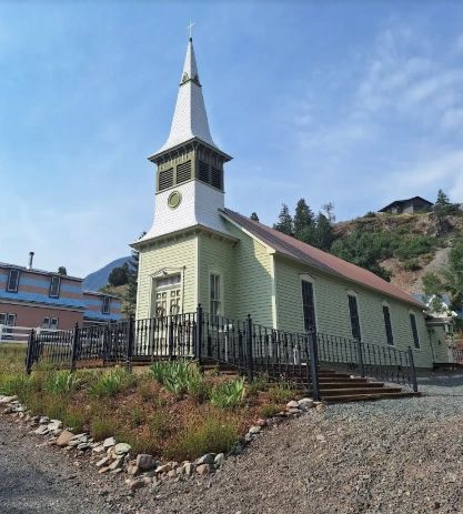 St. Rose of Lima Catholic Church, the oldest Catholic church on Colorado’s Western Slope, started with an organizational meeting hosted by Father Hays of Del Norte, Colorado, in Lake City on September 2, 1877. Funds were raised that fall and winter for a 30’x60’ Gothic-style building, which was formally dedicated on January 6, 1878. The church steeple was added to the building in the 1890s.